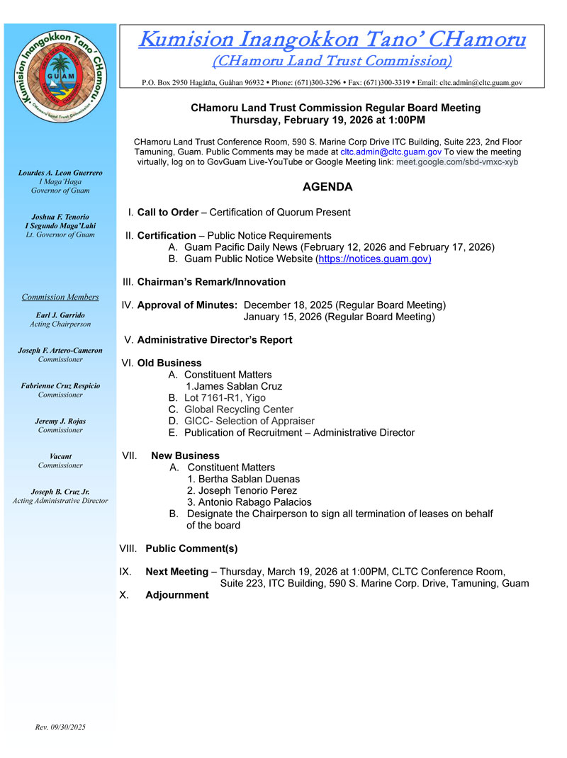 . Guam International Country Club Inc. presented a check in the amount of $226,167.28 to the CHamoru Land Trust Commission Date/Time: 02/16/2026 03:37 pm Category(ies): SHARE THIS Post Guam International Country Club Inc. presented a check in the amount of $226,167.28 to the CHamoru Land Trust Commission